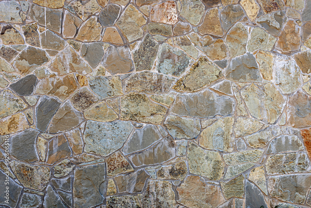 A stone wall with a lot of stones. The wall is brown and gray. The stones are of different sizes and shapes.
