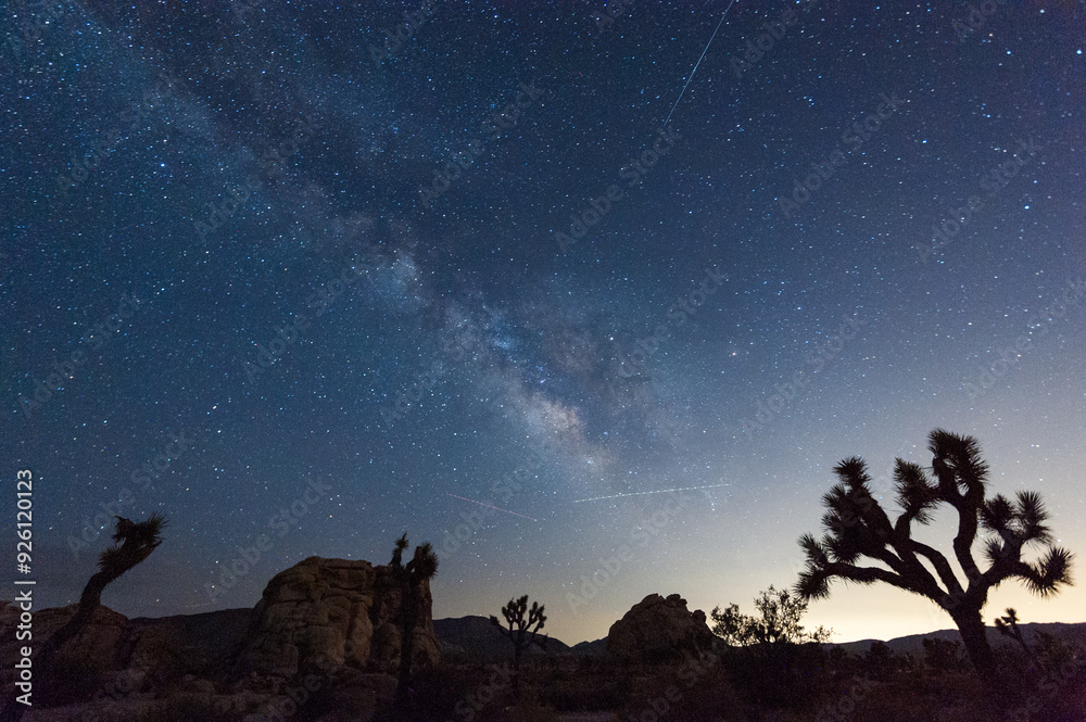 Impression of the night sky on a quiet summer evening in Joshua Tree national park, showing the milky way and many stars.