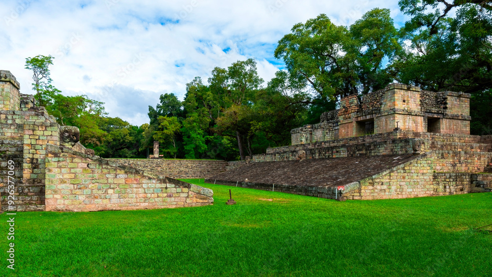 Ball court of Copan Ruinas, an archaeological site of the Maya civilization in Honduras.