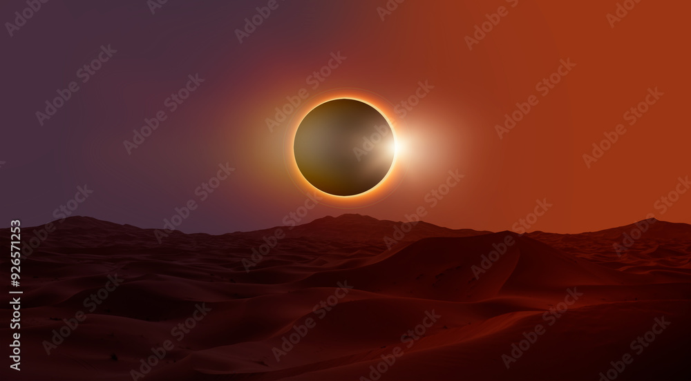 Beautiful sand dunes in the Sahara desert at sunrise with solar eclipse - Sahara, Morocco