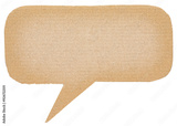 Blank cut out brown corrugated cardboard paper speech bubble of rectangular shape with copy space for text on transparent or white background