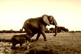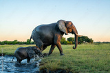 Close encounter with an Elephant mother and her calf at the Chobe riverfront in Chobe National Park in Botswana