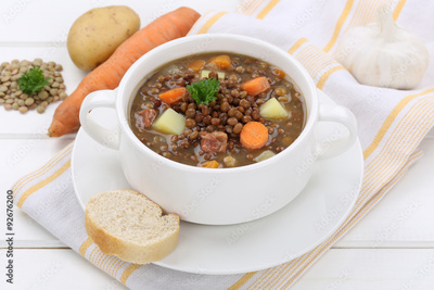 Linsensuppe mit Linsen Suppe in Suppenschüssel