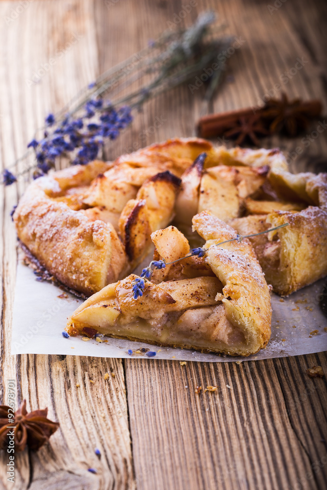 Homemade galette, crusty pie with apples