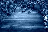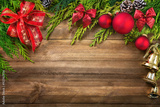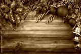Weihnachtsdekoration als Rahmen auf Holz