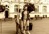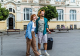 Young couple on a vacation exploring the city.