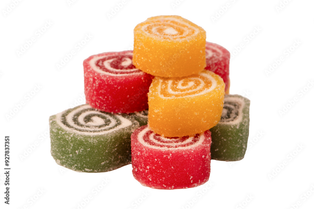 Jelly sweet candy roll isolated on a white background. Marmalade candy.