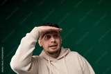 Man in White Hoodie Holding Hands to Head