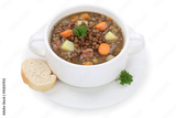Linsensuppe Linsen Suppe in Suppentasse Freisteller