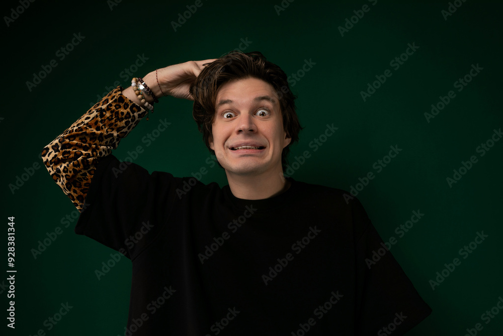 Man in Black Shirt With Leopard Print Sleeve