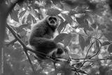 Sumatran lar gibbon in the nature habitat, also known as the Sumatran white-handed gibbon, is a subspecies of the lar gibbon, a primate in the gibbon family Hylobatidae. Hylobates lar vestitus.