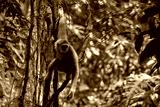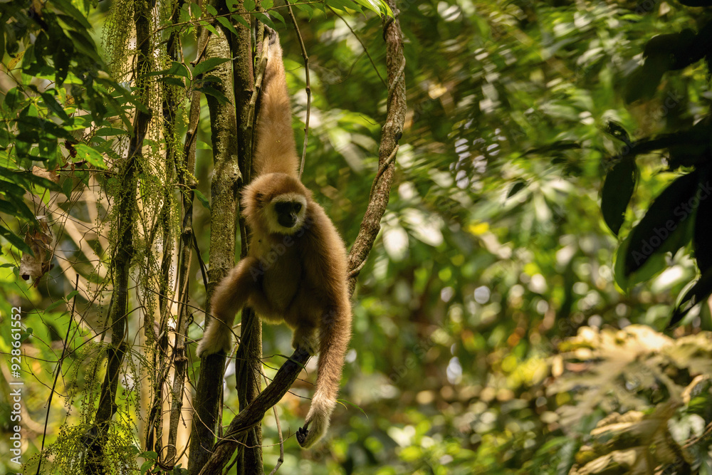 Sumatran lar gibbon in the nature habitat, also known as the Sumatran white-handed gibbon, is a subspecies of the lar gibbon, a primate in the gibbon family Hylobatidae. Hylobates lar vestitus.