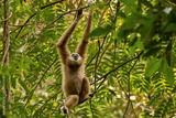 Sumatran lar gibbon in the nature habitat, also known as the Sumatran white-handed gibbon, is a subspecies of the lar gibbon, a primate in the gibbon family Hylobatidae. Hylobates lar vestitus.