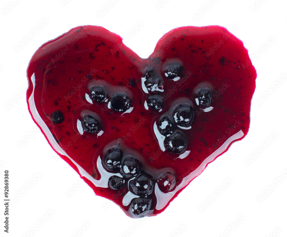 Love red Jam in the form of heart isolated on white background.