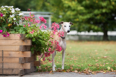 whippet dog standing outdoors