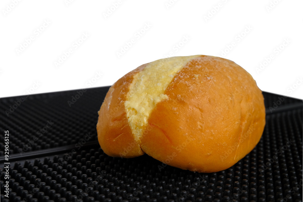 Buns with butter on top, over black mat background.