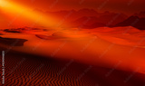 Panoramic view of orange sand dune desert with orange mountains and hill - Namib desert, Namibia