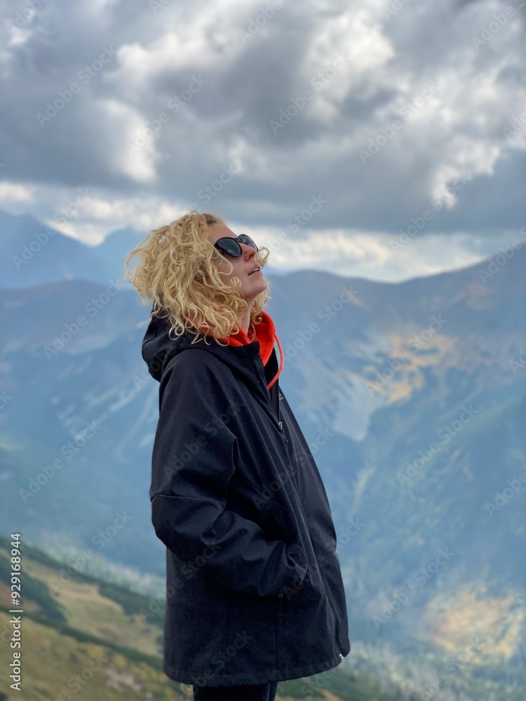 Woman Enjoying Mountain View on Cloudy Day