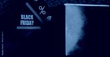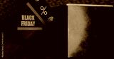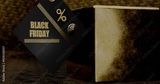 A Black Friday poster featuring the words "Black Friday" in gold letters on a black background. The design includes a gold percentage symbol and a gold target icon with a red bullseye.