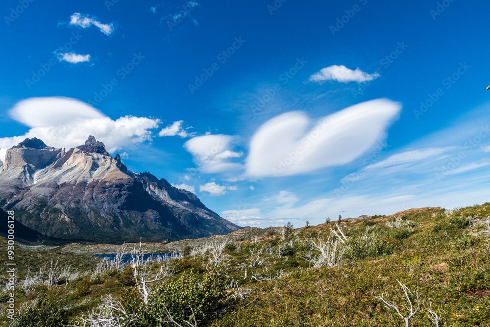 Impressive mountain view on a hike from Refugio Frances to Paine Grande in Torres Del Paine national park, Patagonia, Chile.