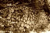 Sciete bale drewna ulozone w stos. Drewno na opal. Zrownowazona gospodarka lesna. Drewno budowlane. Ochrona srodowiska.