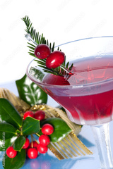 Cosmopolitan cocktail in martini glass Christmas decoration.