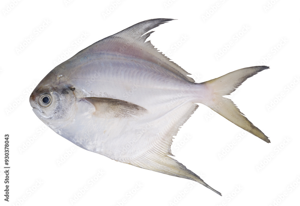 Silver pomfret fish isolated on white background.