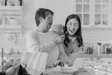mother day family relation bonding at home asian family mother father and daughter enjoy cuddle conversation morning lifestyle hapiness joyful moment while stay at kitchen area home love bonding