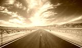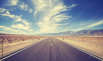 Vintage style highway in Death Valley, USA, travel adventure concept.