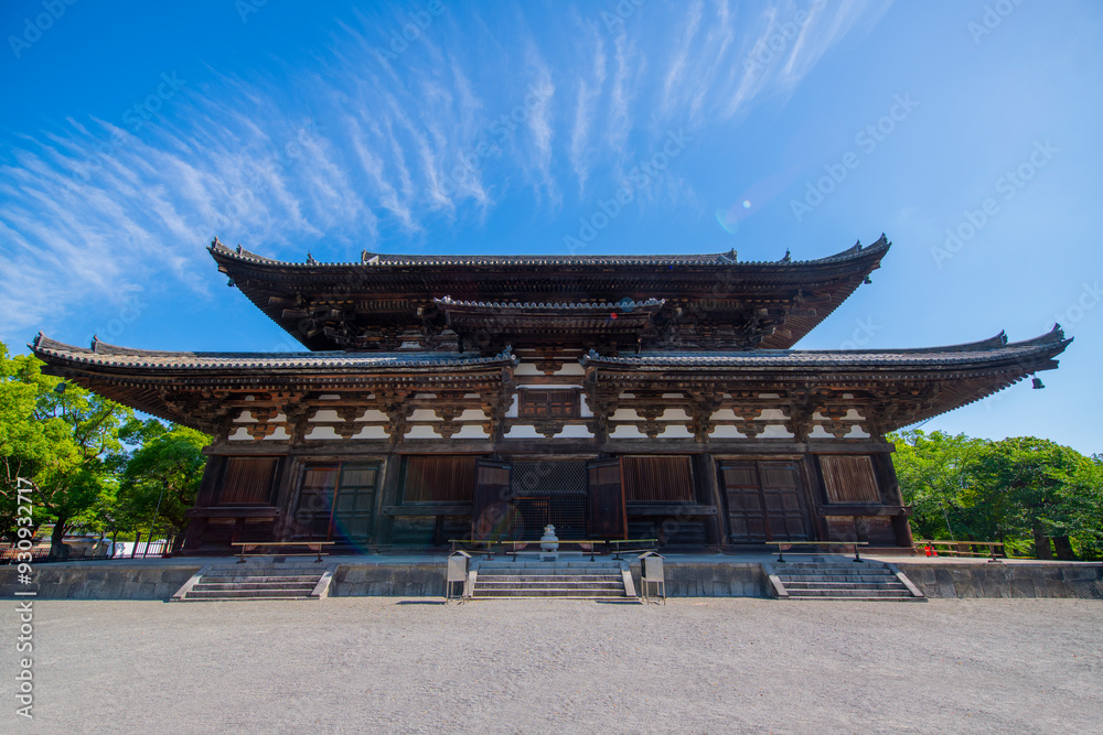 Kondo Main Hall in To-Ji Temple. To Ji Temple is a Shingon Buddhist temple in historic city of Kyoto, Japan. This temple belongs to Historic Monuments of Ancient Kyoto, a UNESCO World Heritage Site.