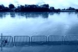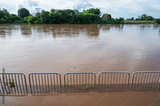 Mae Kok river flood on pedestrian walkway in Chiang Rai province of Thailand during rainy season.
