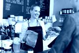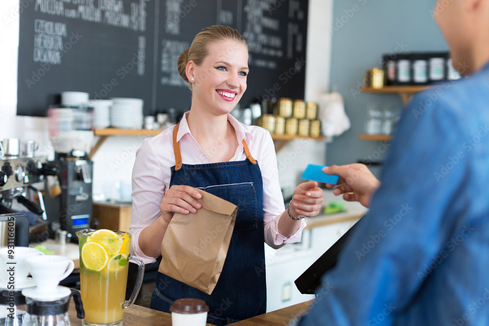 Barista serving customer in coffee shop