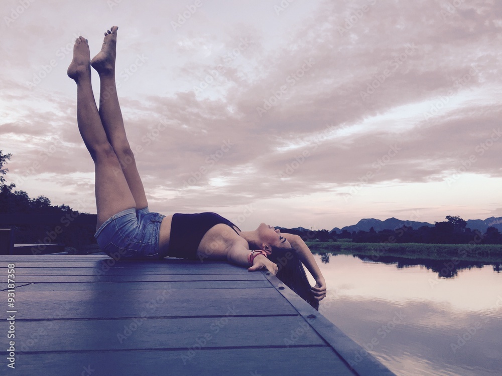 girl chill on rooftop