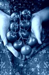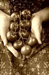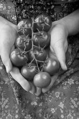 Farmer showing organic tomatoes. Healthy food concept