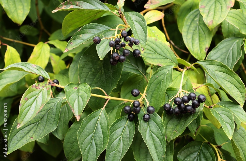 Cornus sanguinea bush and corymbs black berries