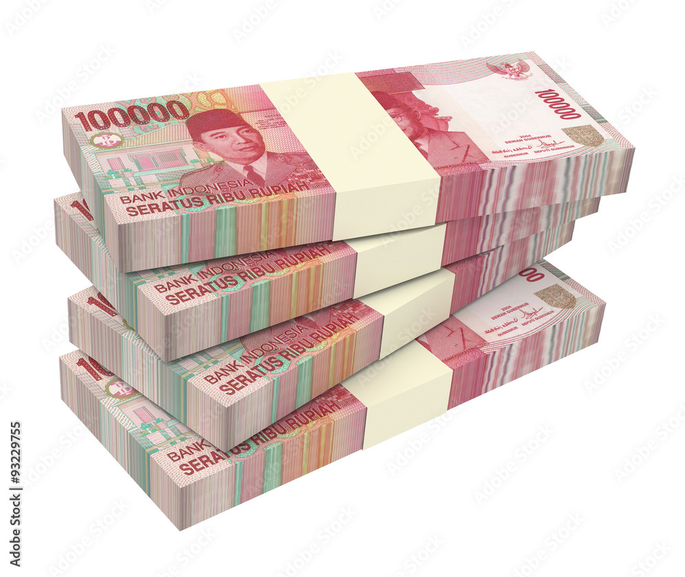 Indonesian rupiah money isolated on white background. Computer generated 3D photo rendering.