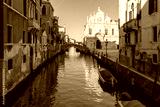Typical Venetian canal at Saints Giovanni and Paolo Square with historic buildings, Venice, Italy