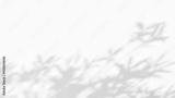 Shadow of leaves tree plant overlay on white wall. Sunlight effect shadow on the wall. Minimal blurred backdrop backgrounds. Summer tropical surface background.