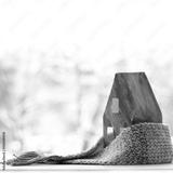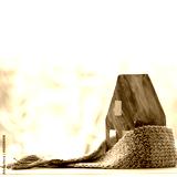 green paper house wrapped in knitted scarf. install windows and it will become warmer in winter