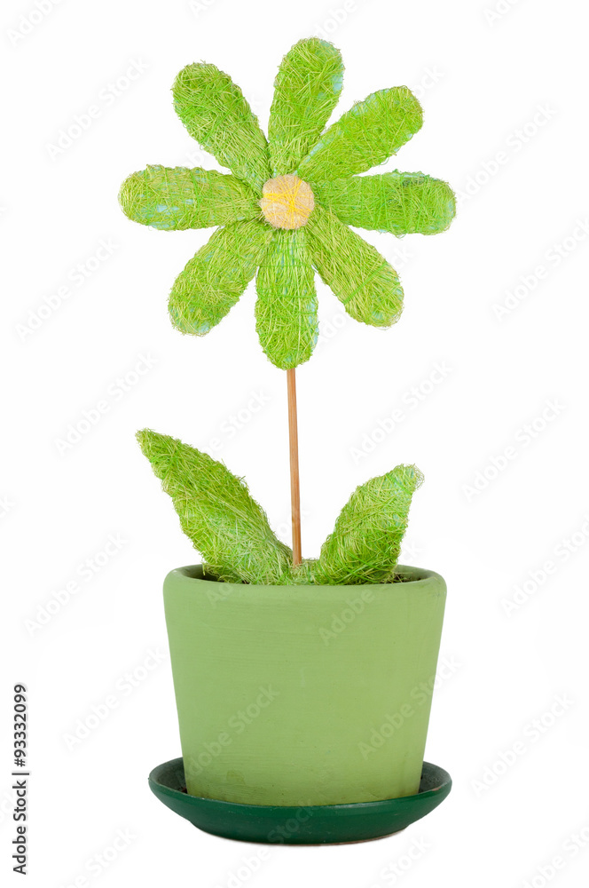 Artificial Flower in Ceramic Pot Isolated on White Background