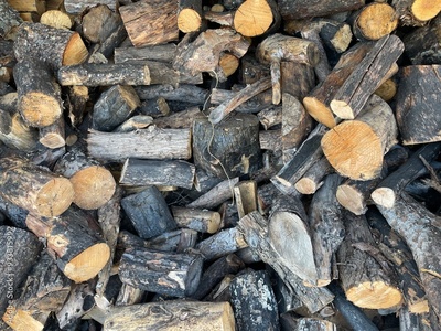 Dry scattered chopped firewood pile. Texture or background. Detail of a pile of chopped wood. This is an image of stacked cord wood.