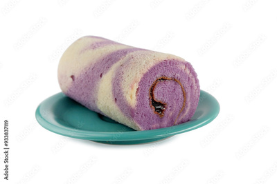 Sweet roll blueberry cake with slice, isolated on white background.