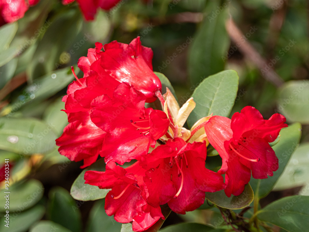 A red flower rhododendron with a green stem