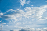 View of clouds floating on blue sky. During the day the sky looks blue because it's the blue light that gets scattered the most.