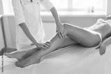 Body care. Spa treatment. Massage of human legs in spa salon