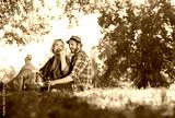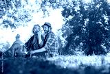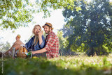 Beautiful Young Couple Having Picnic in Countryside. Happy Famil