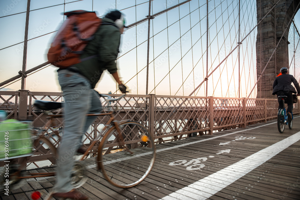 Bicycle road with cyclist on Brooklyn Bridge in New York City