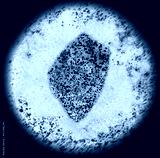 Bacterias in the shape of Swaziland viewed through a microscope.