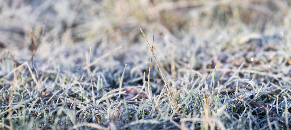 Frost covered grass in winter on a sunny day