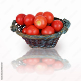 Fresh red tomatoes in a basket on a white background